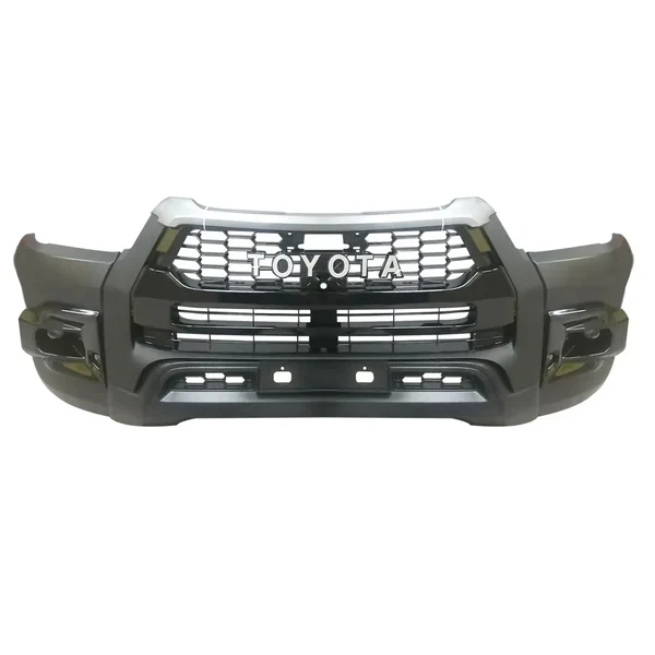 Para-choque de plástico sem pintura Estilo esportivo GR Grade superior em preto brilhante Capas de proteção contra neblina em preto brilhante Faróis de neblina em LED incluídos Câmera da grade frontal não incluída Sensores PDC não incluídos Arco da roda em plástico preto fosco com detalhes em cinza. Algumas modificações serão necessárias para a instalação. Adequado apenas para os modelos Toyota Hilux (a partir de 2020). Não é compatível com modelos Hilux anteriores à reestilização. Vendido por kit O kit é composto por: 1x Para-choque de plástico sem pintura 1x Grade frontal de plástico estilo GR 2x Capas de proteção contra neblina em preto brilhante 2 faróis de neblina LED Conjunto de 6 peças - Arcos de roda em plástico liso estilo OEM com detalhes em cinza. NOTA: Este é um produto de PLÁSTICO. Ele foi fabricado para encaixar corretamente, porém sugerimos que o produto seja colocado no veículo antes de ser pintado, pois não aceitaremos devoluções e/ou reembolsos de produtos que tenham sido pintados ou modificados. Observação: Não é um produto OEM, não é genuíno.